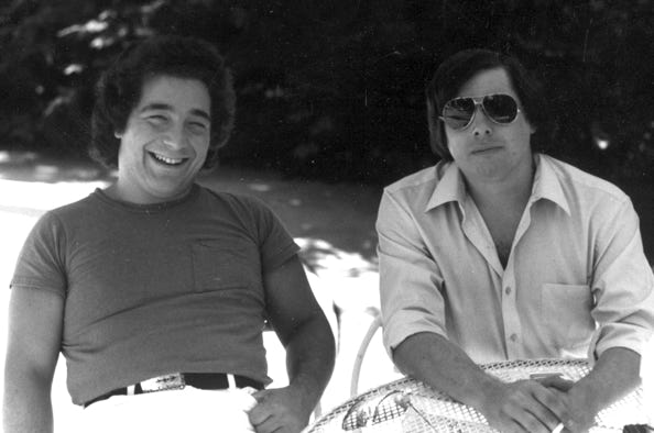 Hanging out by the pool, with songwriting partner Joe Micals. (TWIN MUSIC PRODS.)