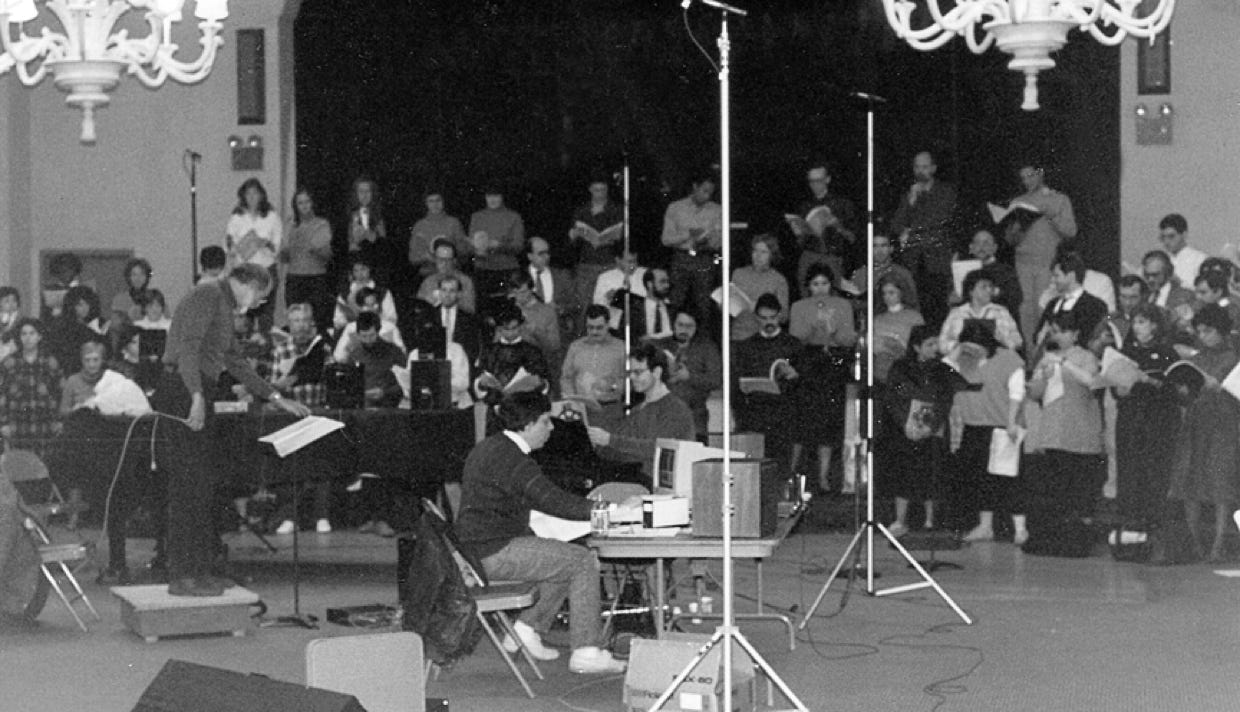 The New York Chorale Society recording all the chorale and solo vocals as I collected all the MIDI data from the piano accompaniment to later use as a guide to add the complete computer generated orchestra.